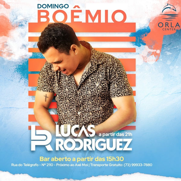 Domingo Boêmio na Orla Center, com Lucas Rodriguez a partir das 21hs !