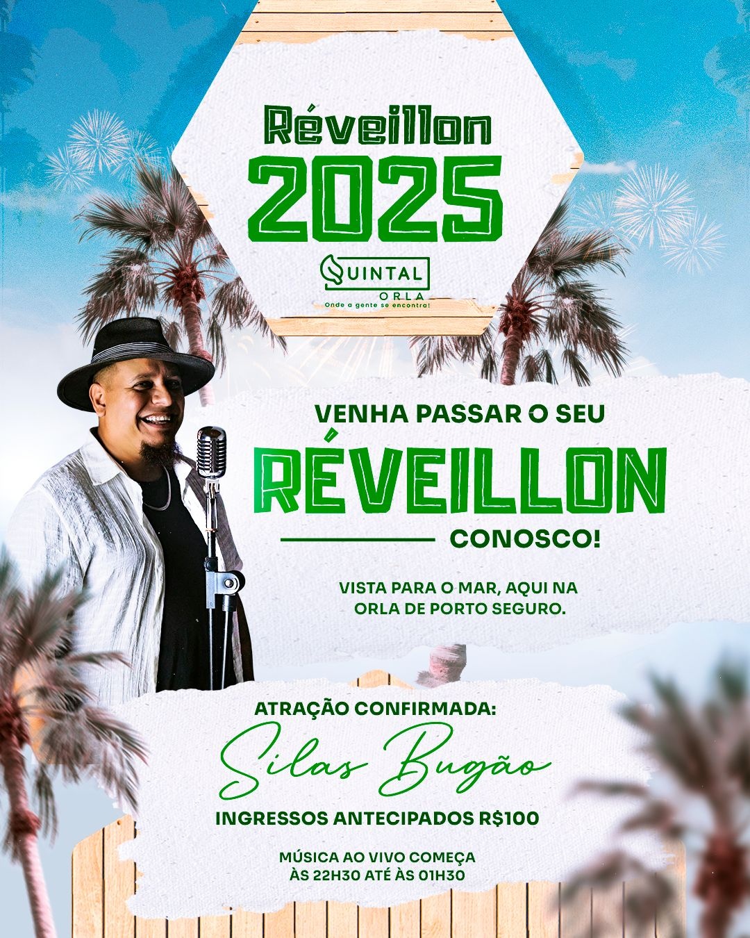 Prepare-se para uma virada inesquecível! Venha curtir o Réveillon 2025 no Quintal Orla com muita música ao vivo e a presença especial de Silas Bugão, trazendo aquela vibe contagiante para começar o ano com o pé direito!